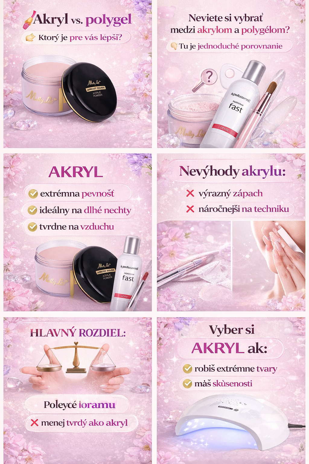 Akryl alebo polygel? Zistite hlavné rozdiely, výhody a nevýhody oboch techník a vyberte si ideálny materiál pre vaše...